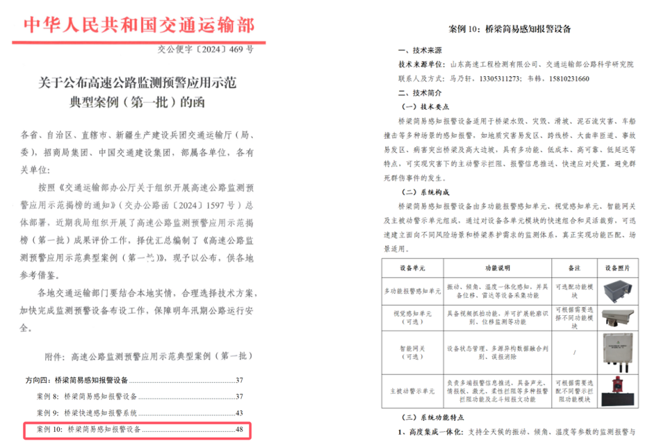 工程咨詢集團權(quán)屬山高檢測公司創(chuàng)新成果“橋梁簡易感知報警設(shè)備”入選交通運輸部首批《高速公路監(jiān)測預(yù)警應(yīng)用示范典型案例》